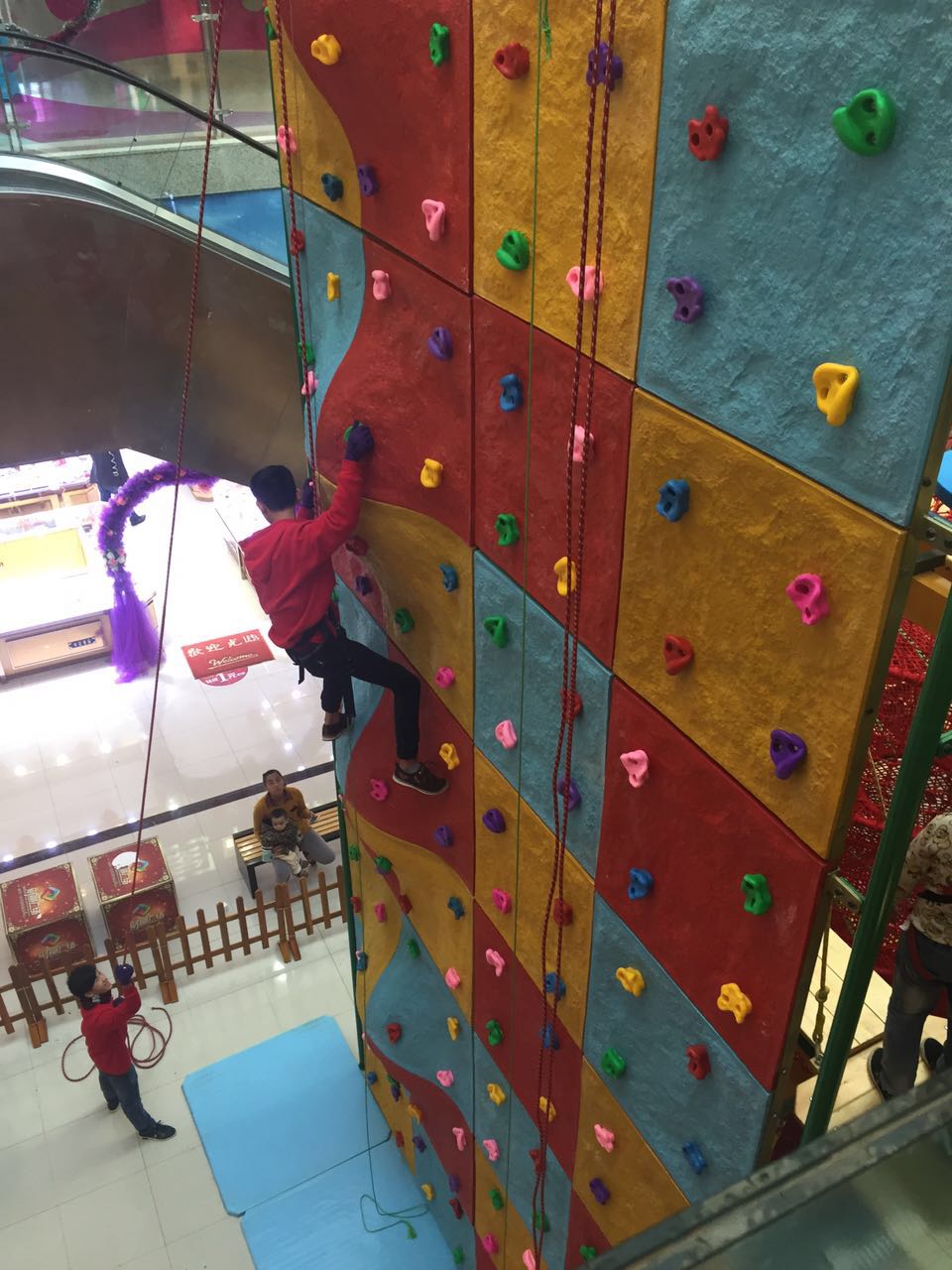 QQ攀趣味攀巖,源自法國 EP 公司旗下品牌 Clip n’Climb 扣扣攀趣味攀巖,各種攀巖花樣繁多,令人眼花繚亂。光看這花樣繁多的設備設施,就抑制不住沖動想上去體驗一把有木有!即使是沒有任何攀巖基礎的人,甚至小朋友,四歲以上皆可體驗,都能在這里感受到攀巖帶來的無比樂趣!